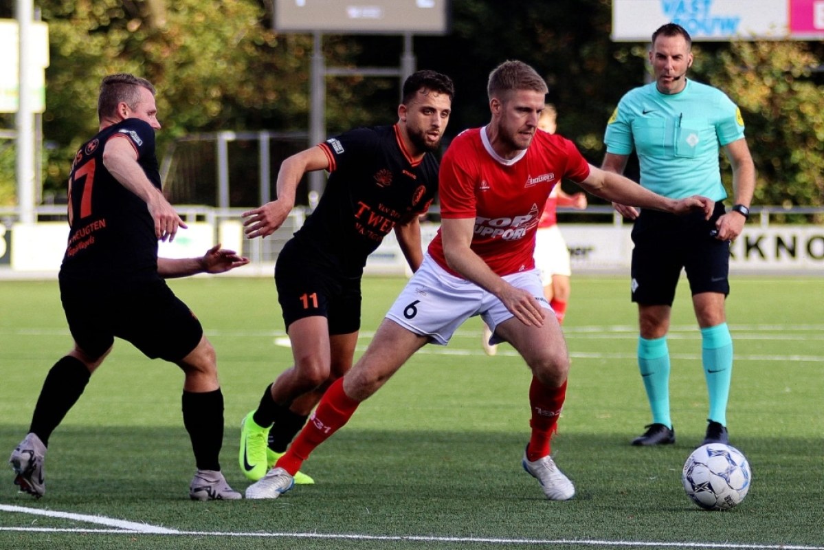 Thomas van Dijk deed in de 60e minuut zijn best om met een muur voor zijn neus de marge uit te breiden. Zijn vrije trap ging via een Excelsior’31-speler net naast het doel.