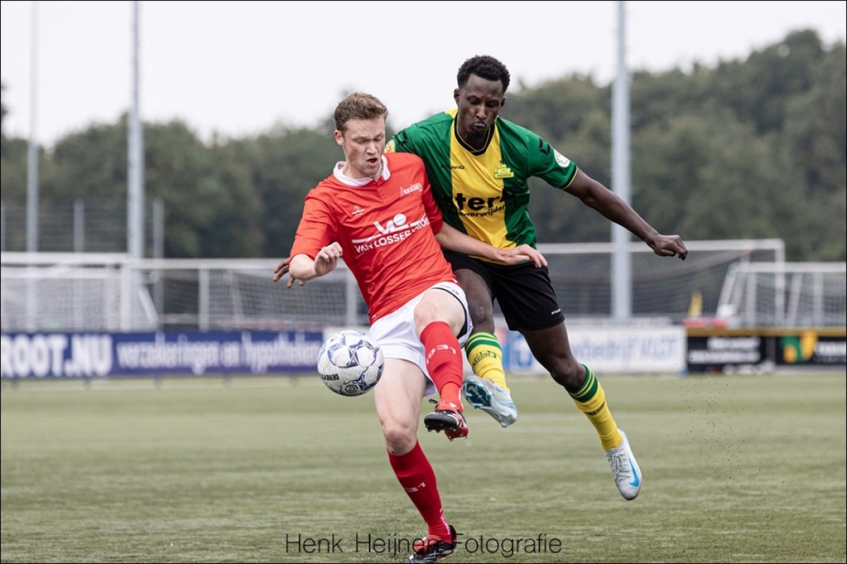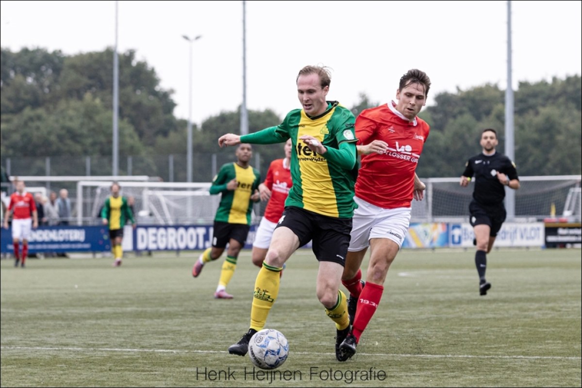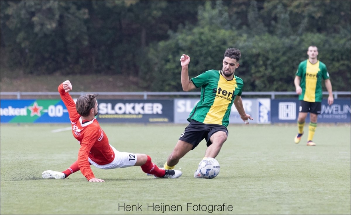 Het lukte Wessel Hofste en Simon Seppenwoolde om in de 29e minuut de bal op het middenveld van Huizen te onderscheppen. Er werd direct gebruikgemaakt van de ruimte.