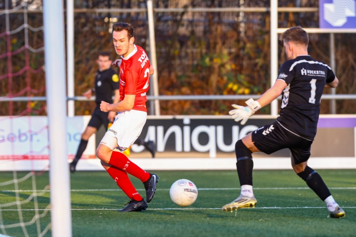 Kevin Reimink hield zijn ploeg in de 72e minuut in de wedstrijd. Jarno Westerman ontsnapte in de diepte en probeerde de doelman te passeren, maar Reimink kwam als winnaar uit de strijd met een knappe redding.